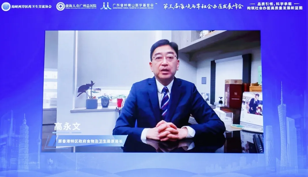 高永文局长在致辞中,介绍了香港医疗体系的双轨制特色,强调了公民医疗和私营医疗的互补及社会办医在满足多元化、个性化、便捷化医疗服务需求方面的重要作用。